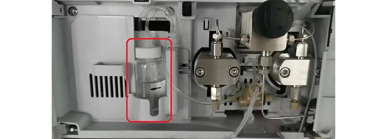 如无柱塞清洗液,在使用含盐流动相时,柱塞杆会暴露在空气中,附着在柱塞杆上的缓冲盐会随溶剂挥发而析出,对密封圈产生磨损,柱塞清洗液的作用是将附着在柱塞杆上的缓冲盐清洗下来,延长密封圈的使用寿命。