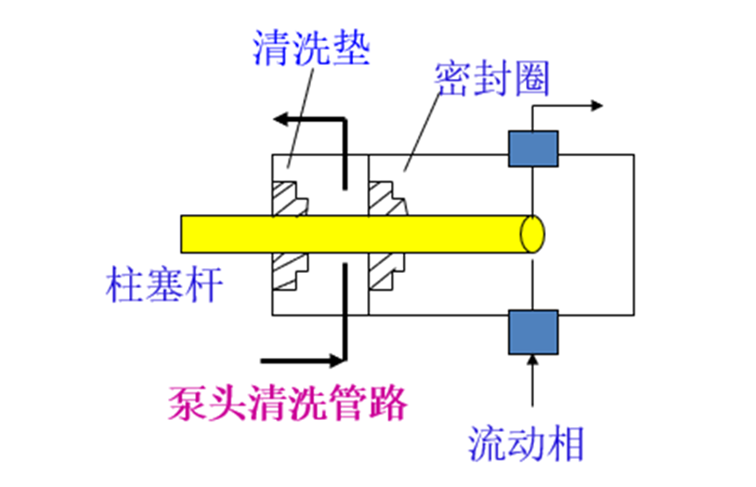 从上图的泵头结构可以看出,瓶子里的清洗液是用来清洗和润滑柱塞杆,主要为了延长密封圈的寿命。