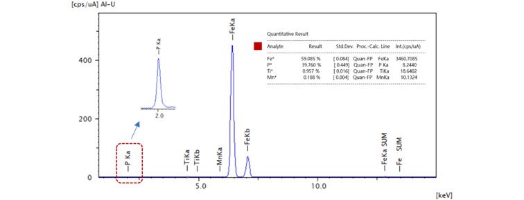 图3. 磷酸铁锂正极材料的EDX测试结果