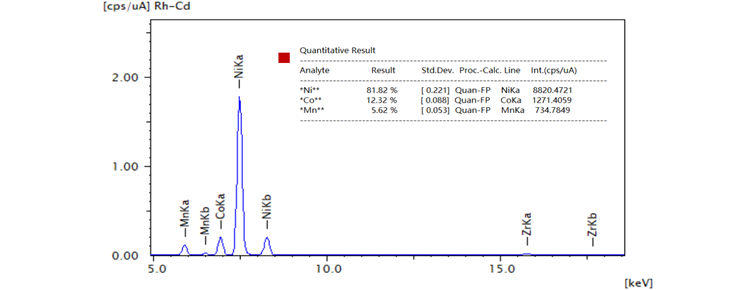 不过,它只能鉴别元素种类,不能分辨元素价态结构,虽然检测到含有Ni、Co、Mn元素,但不明确存在形式。