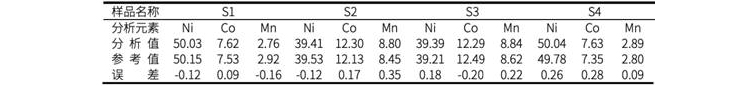 表1. 能量色散型X射线荧光定量分析正极材料准确度(单位:%)