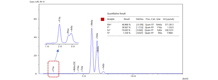 图4. 磷酸铁锰锂正极材料的EDX测试结果