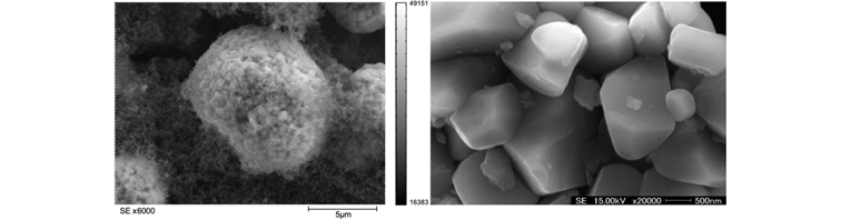 大束流的威力不可挡,正极材料在这里被打回了原形——分别在6000倍和20000倍下得到的图像显示,它是直径10~20um的球形颗粒,由纳米级的一次颗粒团簇而成。