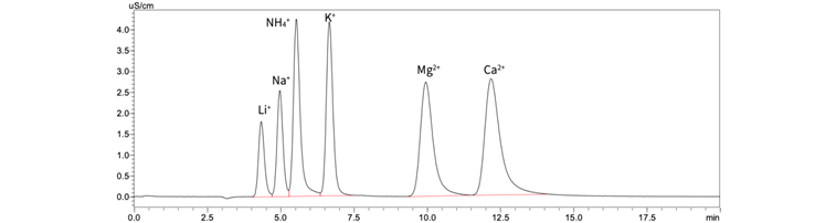 岛津Essentia IC-16离子色谱仪配置阳离子抑制器,可快速高效对地表水中6种可溶性阳离子进行测定,轻松应对《HJ 812-2016 水质 可溶性阳离子的测定 离子色谱法》中阳离子检测标准的要求。