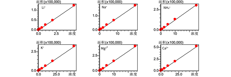 图2. 6种水溶性阳离子校准曲线