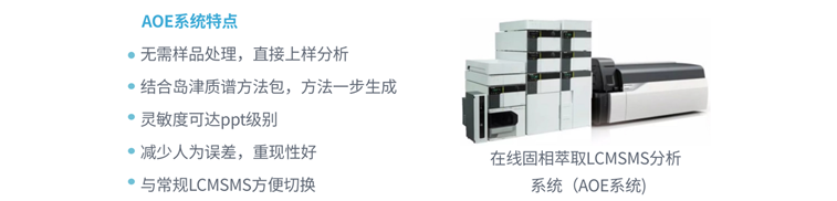 岛津公司针对固相萃取的富集方式提供全自动化样品处理平台(AOE),可自动完成样品前处理操作,同时保证重复性及环境友好性。