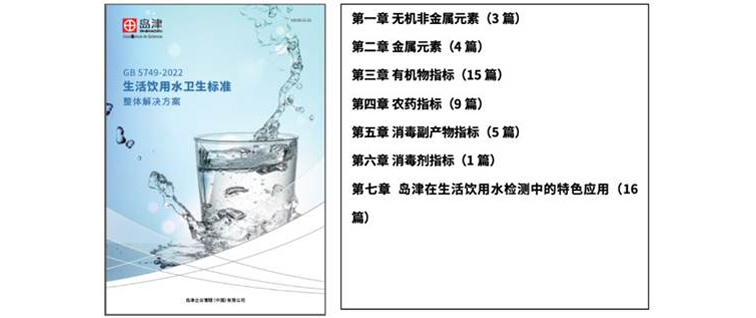 更多内容,请参考岛津应对GB 5749-2022标准新推出的《GB 5749-2022生活饮用水卫生标准 整体解决方案》一册!此解决方案皆在为广大水质分析者的实际工作提供参考与借鉴,同时让您一册在手,无忧应对GB 5749-2022的实施!岛津将继续秉承“以科学技术向社会做贡献”的宗旨,继续为广大客户提供更多、更全面的解决方案!
