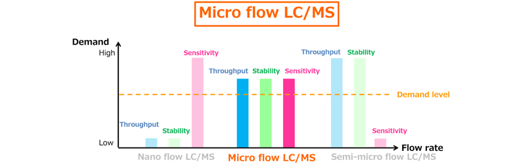 Micro液相的色谱柱内径介于0.1~1.0 mm之间,流速一般介于1~100 μL之间,这一流速下的仪器稳定性、耐用性和维护性都比Nano液相有大幅提高,通量接近半微量分析型液相,而其去离子效率相比半微量分析型液相大大提高。因此Micro液相没有明显的短板,理论上是三种液相中相对理想的技术。