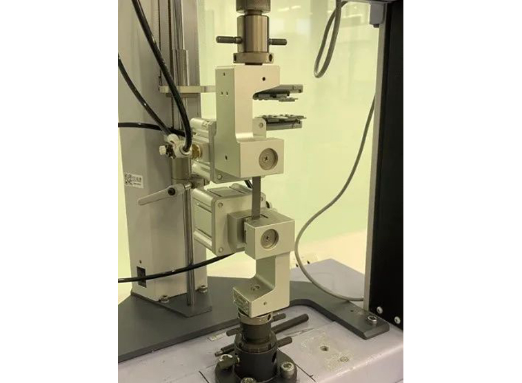 将碳纸粘贴在不锈钢基板上,碳纸表面再贴上胶带。选用1KN气动拉伸夹具来完成拉伸测试。