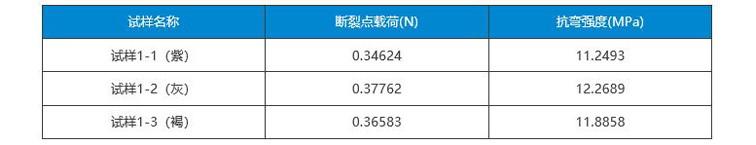 从图表和三点弯曲载荷-时间曲线,以及抗弯强度差异不大,可判断3个试样的抗弯强度和断裂点载荷保持稳定,进而可判断本批次样品的抗压水平保持在一个水平。