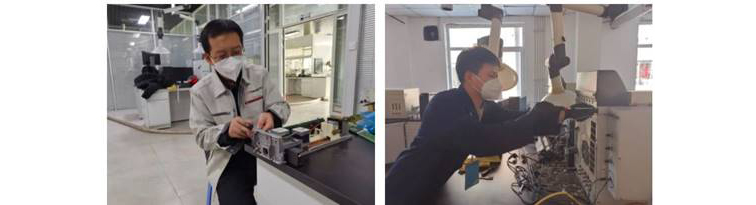 从内部灰尘及碎片的清理,到外部管路的重新连接和漏气检查,电源线绝缘皮的认真梳理,我们将安全第一的原则贯彻始终。三天的工作是辛苦且枯燥的,但我们也收获了满满的成果。二十一套气相及一套气质在我们手中又焕发了它应有的面貌和使命,中断的检测工作得以正常进行。
