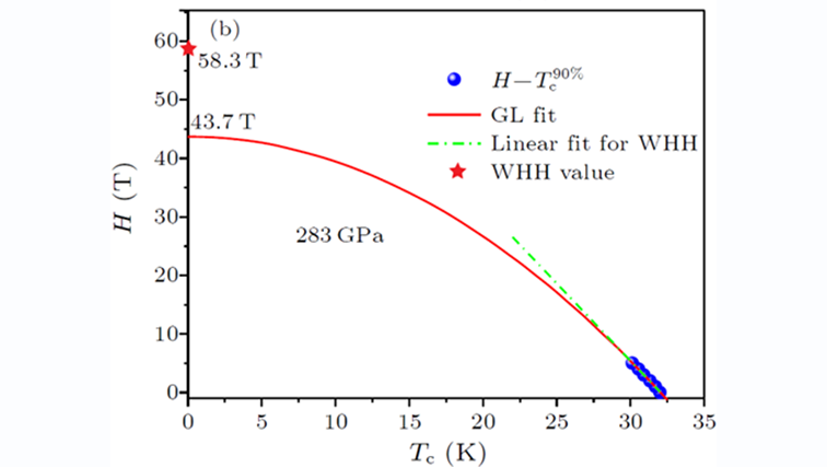 图2、钪金属在283 GPa压力估算的上临界场。