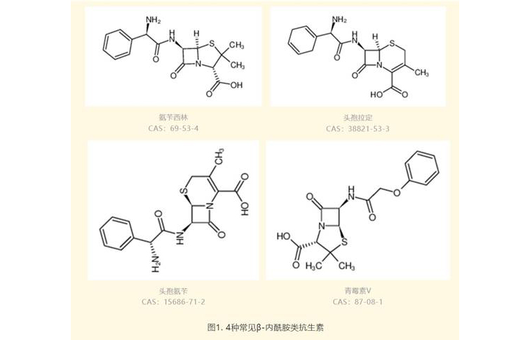 β-内酰胺类(β-lactams)抗生素系指化学结构中具有β-内酰胺环的一大类抗生素,包括青霉素类与头孢菌素类以及新发展的头霉素类、硫霉素类、单环β-内酰胺类等其他非典型β-内酰胺类抗生素。