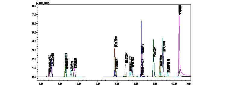 头孢拉定等β-内酰胺类抗生素类药物的混合标准溶液色谱图如下所示: