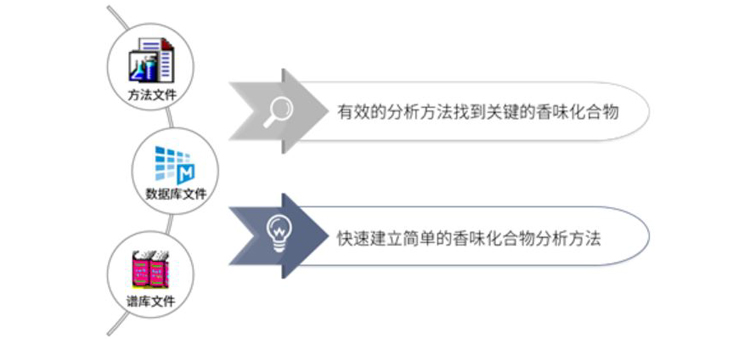 Smart Aroma Database注册有500种以上香味成分的重要信息,涵盖3种不同规格的色谱柱的方法文件、数据库信息文件以及谱库文件,可快速实现不同应用领域定性筛查找到关键的香味化合物、创建高灵敏分析方法。