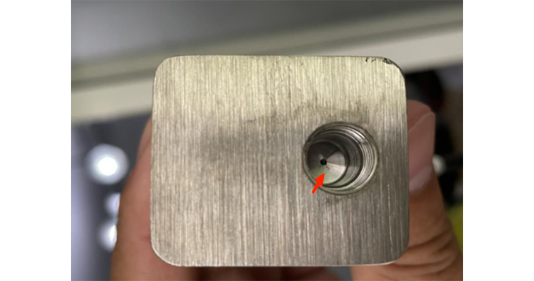 ④ 检查压力传感器,在拆卸下Purge阀时观察到压力传感器内部有一个轻微划痕,无法擦拭掉,用放大镜观察发现是有微裂,如下图: