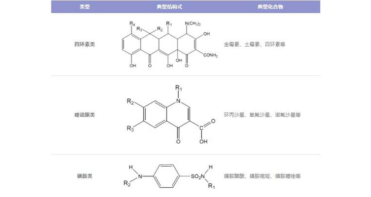 给大家简单普及下,目前常见的抗感染类药物有四环素类、喹诺酮类、磺胺类、林可酰胺类、青霉素类等;这些抗感染类药物被纳入处方药管理,严格控制其使用量,如果被非法添加到祛痘、修复等产品中,短期可有立竿见影的效果,但长期使用会刺激皮肤,引起接触性皮炎等不良反应。因此,我国《化妆品禁用原料目录(2021年版)》明确规定此类物质为化妆品禁用成分。针对此类禁用物质检测,主要是参考《化妆品安全技术规范(2015年)》。