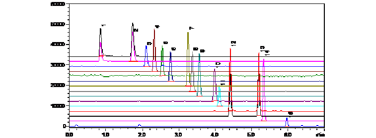 (1.磺胺胍、2.磺胺醋酸、3.磺胺嘧啶、4.磺胺噻唑、5.磺胺吡啶、6.磺胺甲基嘧啶、7.磺胺甲噻二唑、 8.磺胺二甲嘧啶、9.磺胺甲氧哒嗪、10.磺胺氯哒嗪、11.磺胺甲噁唑、12.磺胺多辛、13.磺胺间二甲氧嘧啶、14.磺胺喹噁啉、15.磺胺硝苯)