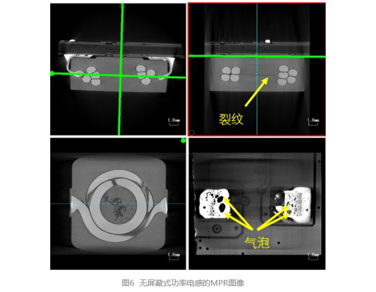 对无屏蔽式功率电感进行CT成像,并进行MPR显示,如图6所示。