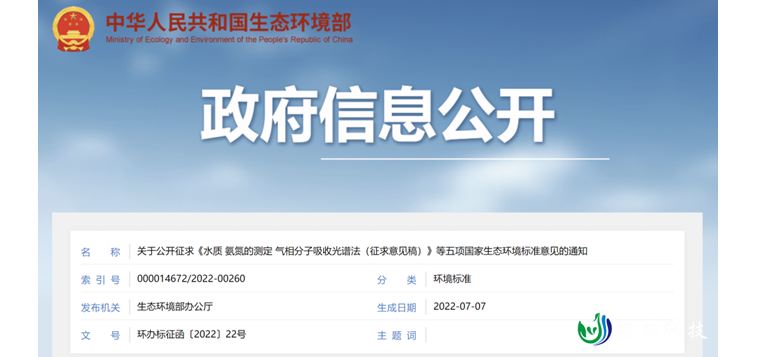 《水质 氨氮的测定 气相分子吸收光谱法》等三项国家生态环境标准征求意见