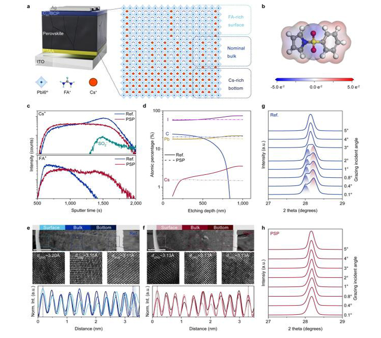 据介绍,研究团队首次发现钙钛矿阳离子面外分布不均匀是影响电池性能的主要原因,破解钙钛矿电池寿命基因难题。