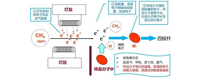 食品安全无小事,食品安全监督抽检是保障食品安全的有力措施。《国家食品安全监督抽检实施细则》(以下简称国抽细则)(2022年版)的食品类别与2021年相同,仍为33大类。在指标方面,农药残留、兽药残留、食品添加剂、营养成分、真菌毒素等仍然是主要的检测指标,检测仪器涉及色谱、色谱串联质谱、光谱等多种类型。推荐检测方法较多,我们来看其中两个:一个是新增加的茶叶中氯酞酸甲酯的检验项目,推荐检测方法为SN/T 4138-2015《出口水果和蔬菜中敌敌畏、四氯硝基苯、丙线磷等88种农药残留量的筛选检测QuEChERS-气相色谱-负化学源质谱法》;另一个是蔬菜中氟虫腈检测,推荐检测方法之一为SN/T 1982-2007《进出口食品中氟虫腈残留量检测方法 气相色谱-质谱法》。两个标准中共同涉及使用的离子源就是今天的主角 —NCI负化学电离源。它可以做什么样品,又有哪些优势呢?