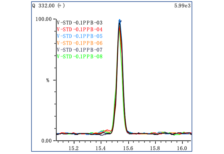大白菜基质氯酞酸甲酯重复性结果(0.1 μg/L)
