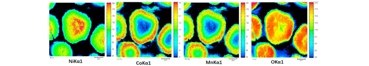 图1 三元前驱体单颗粒中Ni、Co、Mn和O元素分布
