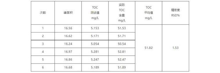 图3 120g/L(Co)硫酸钴溶液中TOC重复分析结果