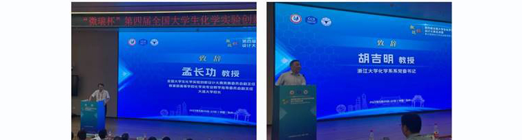 会议开幕式由浙江大学林旭锋主持。大连大学校长孟长功教授、浙江大学化学系系党委书记胡吉明教授分别为赛事致辞开幕。