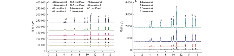 注:1.硫化氢;2.硫氧碳;3.甲硫醇;4.乙硫醇;5.甲硫醚;6.二硫化碳;7.甲乙硫醚;8.噻吩;9.乙硫醚