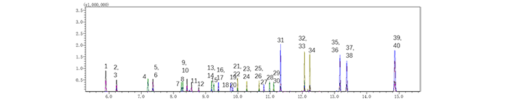 (各组分依次为:BDE-7、BDE-15、13C-BDE-15、BDE-17、BDE-28、13C-BDE-28、BDE-49、BDE-71、BDE-47、13C-BDE-47、BDE-66、BDE-77、BDE-100、13C-BDE-100、BDE-119、BDE-99、13C-BDE-99、BDE-85、BDE-126、13C-BDE-126、BDE-154、13C-BDE-154、BDE-153、13C-BDE-153、BDE-138、13C-BDE-138、BDE-156、BDE-184、BDE-183、13C-BDE-183、BDE-191、BDE-197、13C-BDE-197、BDE-196、BDE-207、13C-BDE-207、BDE-206、13C-BDE-206、BDE-209、13C-BDE-209)