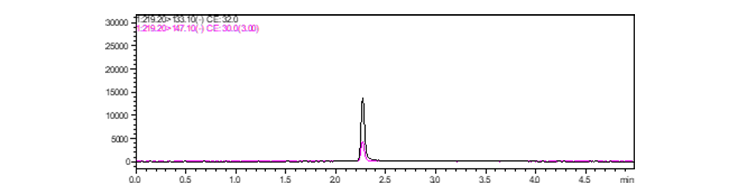 图4. 壬基酚标准品(10 μg/L)MRM色谱图