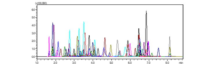 使用岛津超高效液相色谱三重四极杆质谱联用仪LCMS-8050建立测定水中101种药品和个人护理用品物质(PPCPs)残留的方法包。本方法包具有化合物覆盖范围广、分析速度快、重复性好、灵敏高的特点,可用于快速筛查和定量环境水样品中PPCPs污染物。