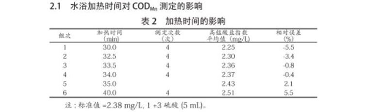 不同的加热条件对于测定CODMn的准确性会产生影响。其影响因素主要体现为加热时间以及水浴所处的环境等。