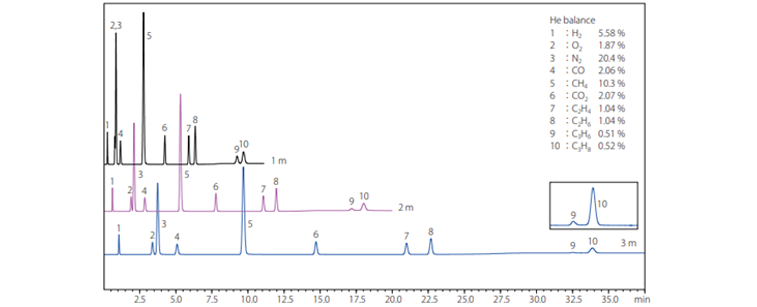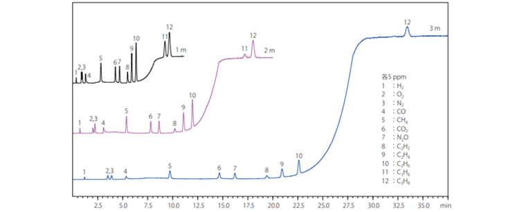 3. 岛津应用No.G297. Micropacked-ST微填充柱分离效率的比较。
