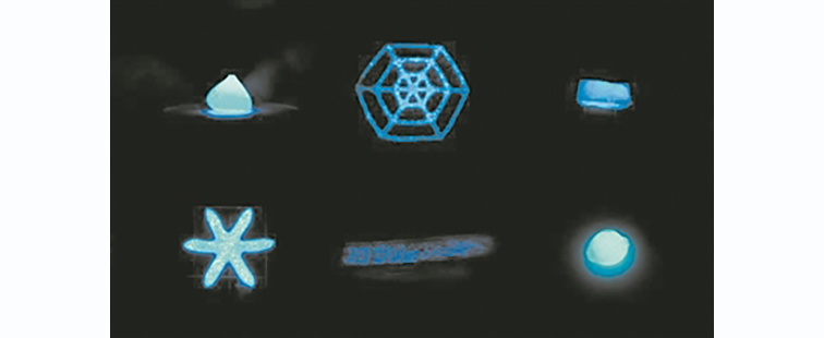 当材料受到压缩、拉伸或扭曲时,其中的甲藻会发出光来做出反应。这种反应模仿了海洋中发生的情况——甲藻产生闪光作为捕食者防御策略的一部分。在测试中,当研究人员按压这些材料并在其表面描绘图案时,这些材料就会发光,甚至也足够敏感,滚动的泡沫球那么轻的重量,即可触发发光。