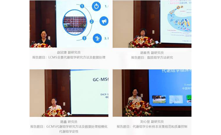 会议后半场的主题为全景代谢组学方法研讨。大连化学物理研究所赵欣捷副研究员、胡春秀副研究员、路鑫研究员、刘心昱副研究员、石先哲副研究员分别介绍了LCMS代谢组学研究方法及数据处理、脂质组学研究方法及应用、GCMS代谢组学方法及应用、临床样本采集规范与质量控制、细胞代谢组学分析方法及应用。现场老师积极参与讨论,与发表专家深入交流。