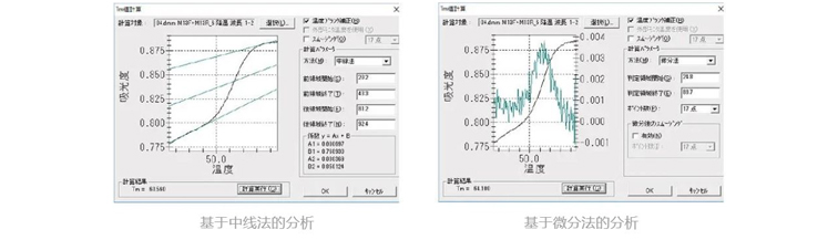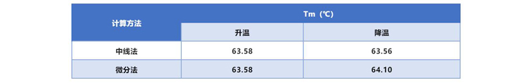 测试完成后,可以通过中线法和微分法两种方法计算Tm值,最终得到的Tm值结果基本一致。