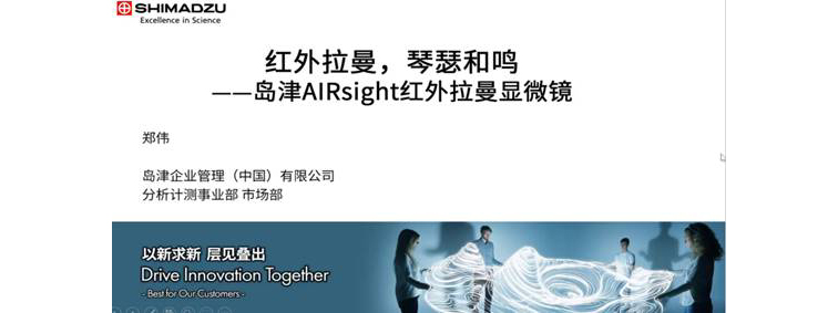 郑伟先生先以“红外拉曼,琴瑟和鸣——岛津AIRsight红外拉曼显微镜”为题做主题报告,详细介绍了红外-拉曼“二位一体”的AIRsight显微镜产品创新性和技术优点,该产品基于红外光谱和拉曼光谱两种分析技术的组合,优化了显微分析操作所涉及的从样品观察、定位标记、多模式测定到数据分析的全工作流效率。该产品可广泛应用于药片异物、微塑料颗粒、文物/艺术品颜料以及锂离子电池负极材料等极微量样品和样品微小区域的多维度光谱分析测试。