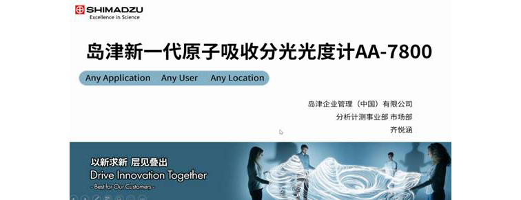 最后,齐悦涵女士以“岛津新一代原子吸收分光光度计AA-7800”为题做主题报告。她介绍到,岛津AA系列的原子吸收分光光度计产品在无机分析领域拥有重要地位,新产品AA-7800在上一代产品的基础上进行了全新改进:1.火焰分析方面采用双光束光学系统,选配原子增压器延长原子蒸汽滞留时间等实现高稳定性高灵敏度的火焰分析,同时增加了乙炔气调节器故障检测和振动传感器功能进一步提升安全性;2.石墨炉分析方面搭载了气路减压技术、高精度气路电子流量控制器、升温条件自动优化等技术实现高灵敏度和结果重复可靠的测试;3.仪器外观小巧节省空间,还可使用火焰和石墨炉一体式自动进样器,能接入岛津网络版软件满足数据完整性的法规要求。