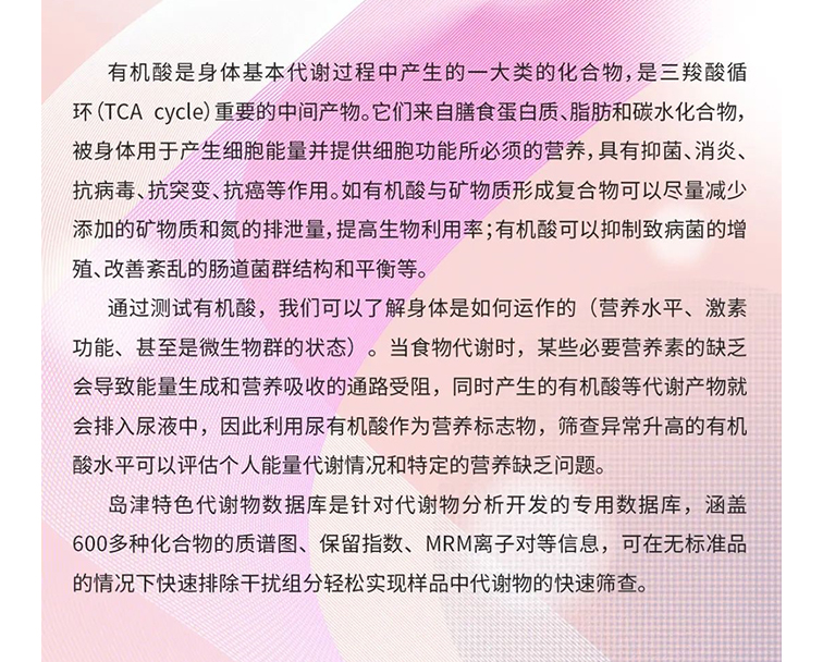 气质百川 | 岛津智能代谢物数据库助力营养标志物有机酸的快速筛查