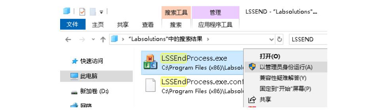 在C:\Program Files (x86)\LabSolutions窗口右上角的搜索框里输入LSSEND,显示出LSSEndProcess.exe。