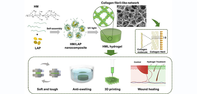 论文通讯作者王小英表示,该研究利用甲基丙烯酰化羟丙基壳聚糖(HM)和锂皂石(LAP)间的自组装形成