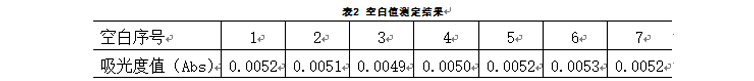 连续测定7次空白水样吸光度,求出最低检出限,测得如表2所示。