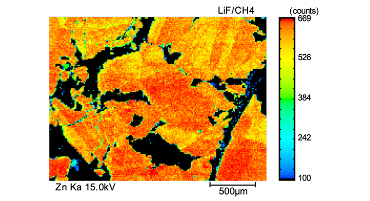 借助岛津电子探针对某处的热液硫化物进行分析,发现了微量贵金属Au-Ag包裹体,显示其经溶蚀作用后被暴露于闪锌矿晶体边界。说明了海底热液硫化物的开采价值,也验证了岛津电子探针在测试微量元素方面的高灵敏度特征。