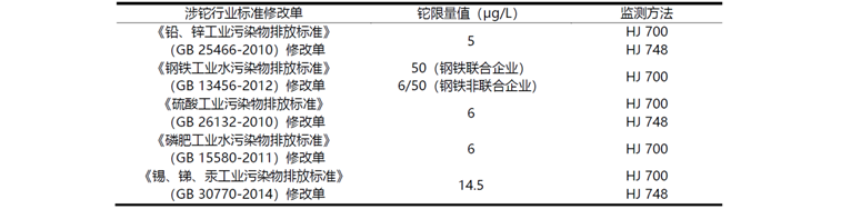 表1 涉铊重点行业废水铊排放限值及监测方法
