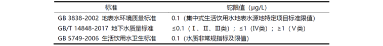 我国地表水、地下水和生活饮用水标准均对铊浓度限值进行了规定(表2),限值基本都是0.1 μg/L。