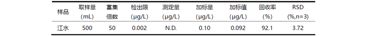 ICP-MS作为目前元素分析中灵敏度最高的技术,检出限可达pg/L~ng/L级别,具有测定速度快、多元素同时分析等优点,对环境水污染应急监测和污染源排查具有无可比拟的优势,一次进样、几分钟内即可实现高达几十种元素的定量分析,大大提高了工作效率。