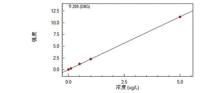 如图2所示,岛津ICPMS-2030系列检测水质铊,仪器检出限(IDL)为0.002 μg/L,满足地表水、地下水、废水等水环境中微量铊的检测分析。